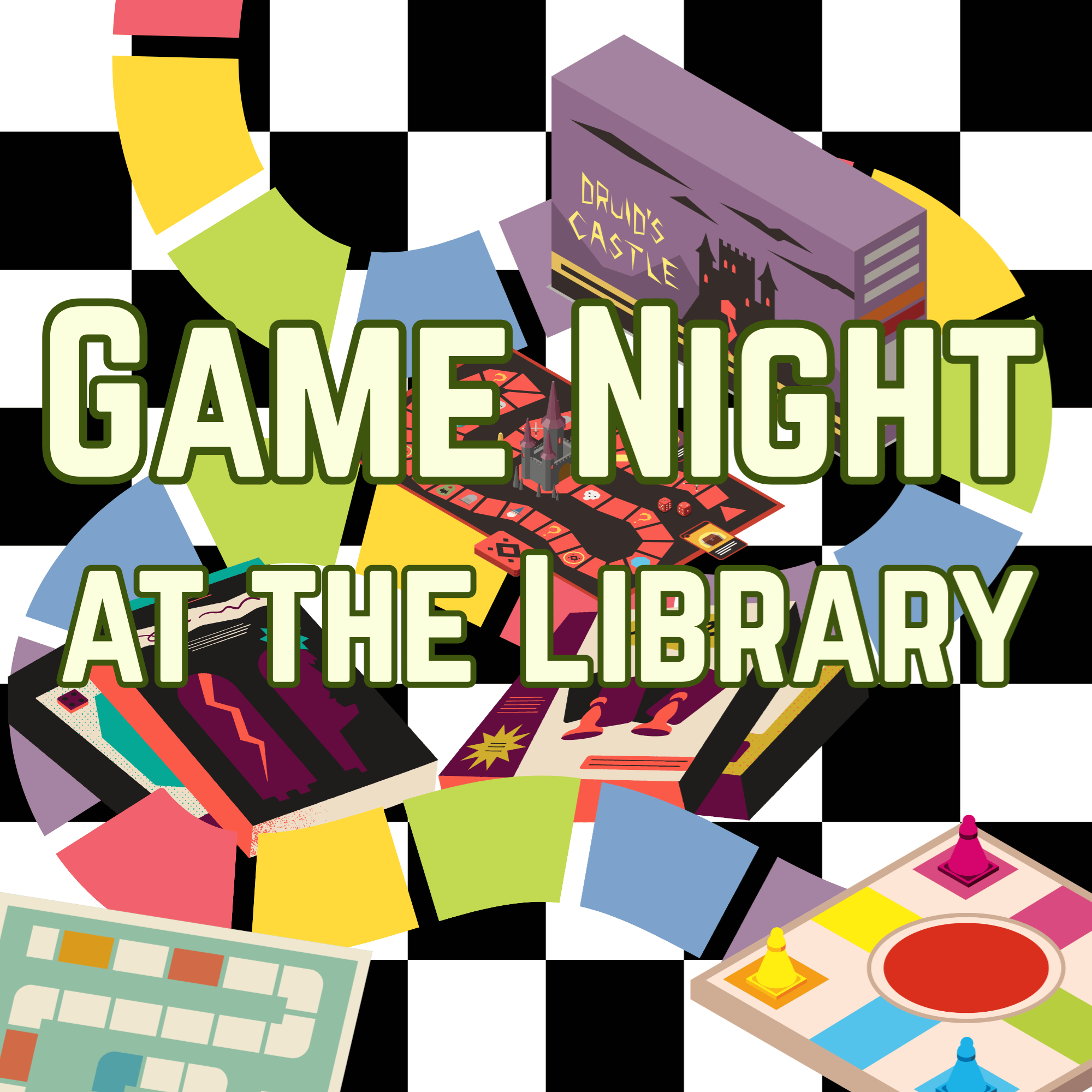 Game Night at the Library Monday, March 16th from 5:30 to 7:30 p.m. Looking for something to do in the evening? Why not stop by the Library's game night to play a round or two. Feel free to bring in games that you love, or to choose from among our collection. We've got classics like Chess and Clue, and newer games like Botanik and Castle Panic. We're open to everyone who wants to have an enjoyable evening in good company, whether you've been playing games all your life, or if you're just getting started, though children 7 and under must be accompanied by a guardian.