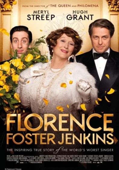 Monday Movie Matinee: Florence Foster Jenkins Monday, August 21st at 1:30 p.m. Special showing in honor of this year's Summer Reading theme, Find Your Voice! The story of Florence Foster Jenkins, a New York heiress who dreamed of becoming an opera singer, despite having a terrible singing voice. Starring Meryl Streep and Hugh Grant. 110 minutes. Rated PG-13.