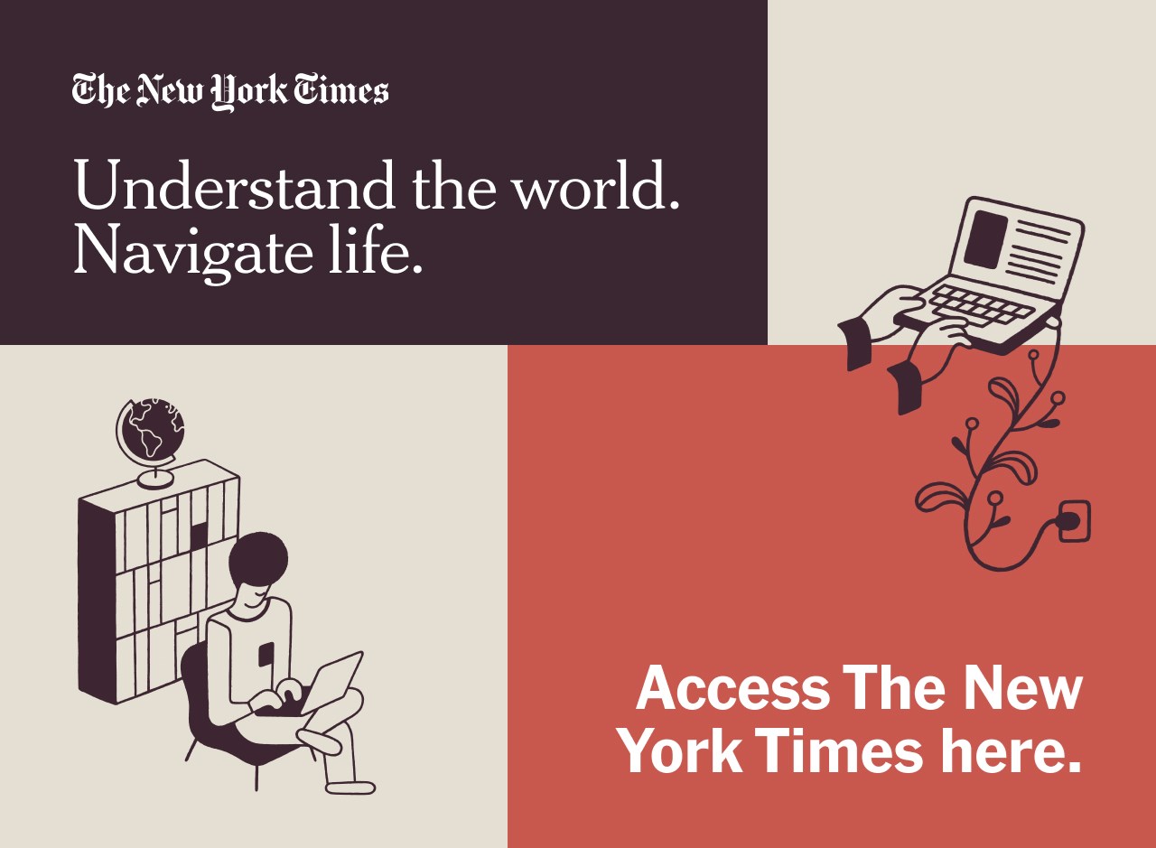 Enjoy The New York Times, courtesy of Pembroke Public Library. Discover original, quality journalism that helps you make sense of this moment — and make everyday life better. To explore from home, click/tap here for an off-site access code, good for 24 hours (you can request a new code after the 24 hour period ends). You will be prompted to set up a free account with your email address, and will use this account any time you access the library's subscription.