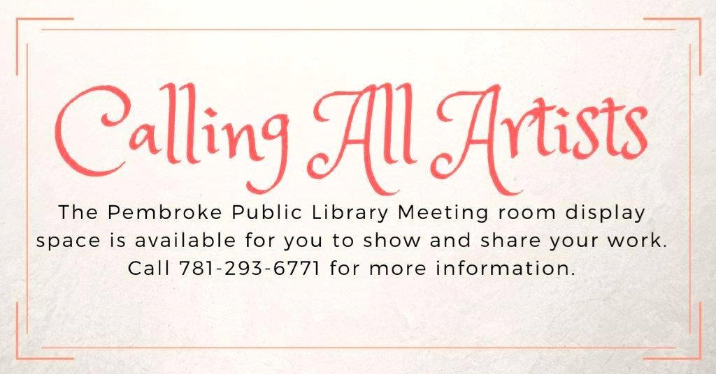 TEDxPembrokePublicLibraryWednesday, January 3rd at 6:30 p.m. Theme: "Medical Innovation." Watch and discuss three TED Talk videos about recent advancements in medicine and the importance of doctors staying curious. Register at the main desk, by calling us at 781-293-6771, or online at www.pembrokepubliclibrary.org/tedxpembrokepubliclibrary. Wednesday, February 7th at 6:30 p.m. Theme: "Art of Today." Watch and discuss three TED Talk videos about several modern interpretations of art and how artwork is becoming more accessible to everyone. Register at the main desk, by calling us at 781-293-6771, or online at www.pembrokepubliclibrary.org/tedxpembrokepubliclibrary.