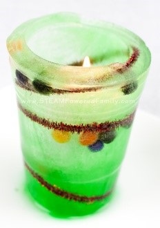 Engineering an Ice Lantern Use household objects or decorations, or find natural supplies like pine needles and berries, and create a beautiful ice lantern! You could even line your driveway or front steps with these festive homemade pieces for the holidays.