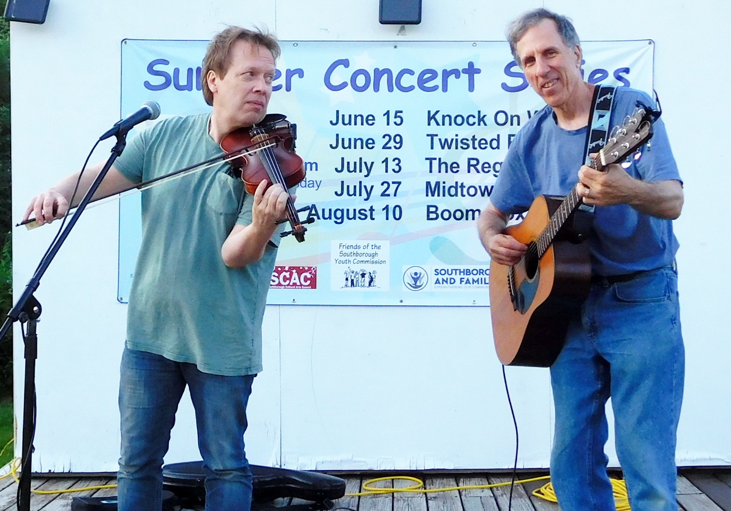Knock on Wood Folk Duo Thursday, March 29th at 6:00 p.m. Knock on Wood is a high-energy acoustic folk-rock duo, featuring singer-songwriter Howie Newman on guitar, lead vocals, and harmonica and Steve Latanision on fiddle, mandolin, and backup vocals. The duo performs funny original songs that are suitable for all ages and classic rock covers. This lively, fun show features great musicianship, pleasing harmonies, humor, and lots of audience participation. For more information and music samples, visit www.howienewman.com/knockonwood. Sponsored by the Friends of the Pembroke Public Library.