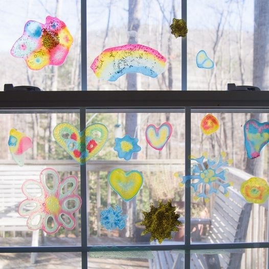 DIY Window Clings Check out this easy step-by-step video tutorial from The Artful Parent! Turn everyday household supplies (glue, liquid dish soap, food coloring) into stunning artwork.