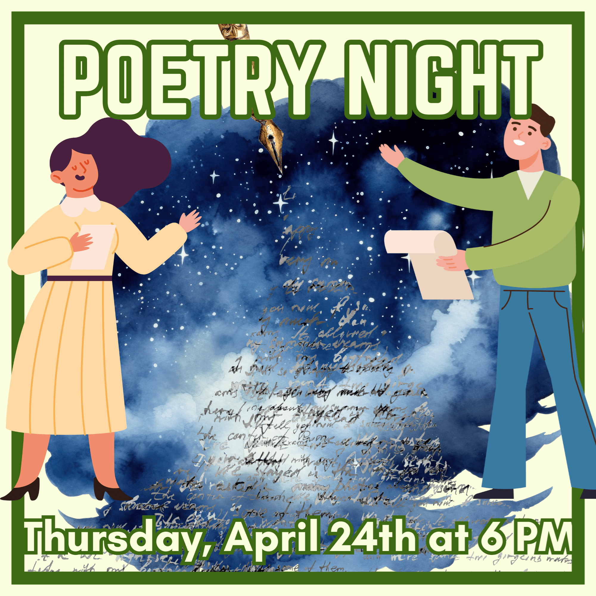 Poetry Night Thursday, April 24th at 6:00 p.m. In celebration of National Poetry Month we’re happy to invite you to our poetry night! Do you have a poem (or several) you want to share with others? Whether you’ve written it yourself or it’s just one that speaks to you, you’re invited to read it to other poetry loving patrons! Sign up at the link below and attend poetry night, we’ll let you know when it’s your turn to read. And if you’d prefer to just enjoy some poetry in a relaxed atmosphere, there’s no need to sign-up at all, just stop on by and enjoy the food! For poetry reading participants, register by calling the library at 781-293-6771 or clicking/tapping this link. Make sure to tell us the title of the poem(s) and the name of its author. Each participant will be given a maximum of seven minutes to read, we ask that participants not exceed that time-frame. Refreshments will be provided by the Pembroke Public Library.