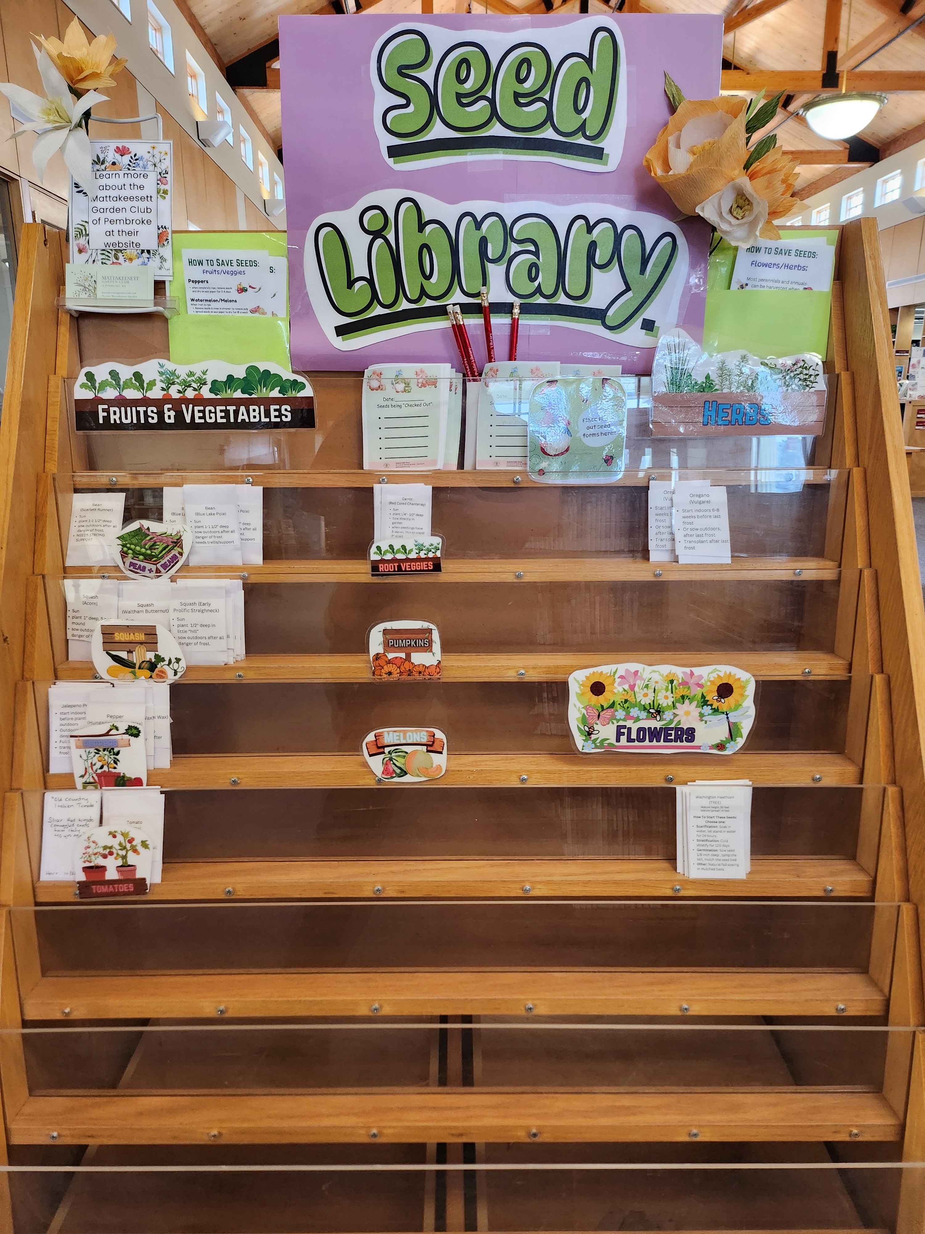 The Seed Library has Returned Our Community Seed Library is back and ready for a new season of gardening! Located in the display to the right of the Young Adults Room, patrons can choose from a variety of seed packs, including herbs, flowers, and vegetables. Simply fill out a brief form and turn it in to staff at the main desk, and you’ll be on your way to growing. To help sustain our Seed Library, we will be accepting donations of new, unopened seed packets. Happy growing!