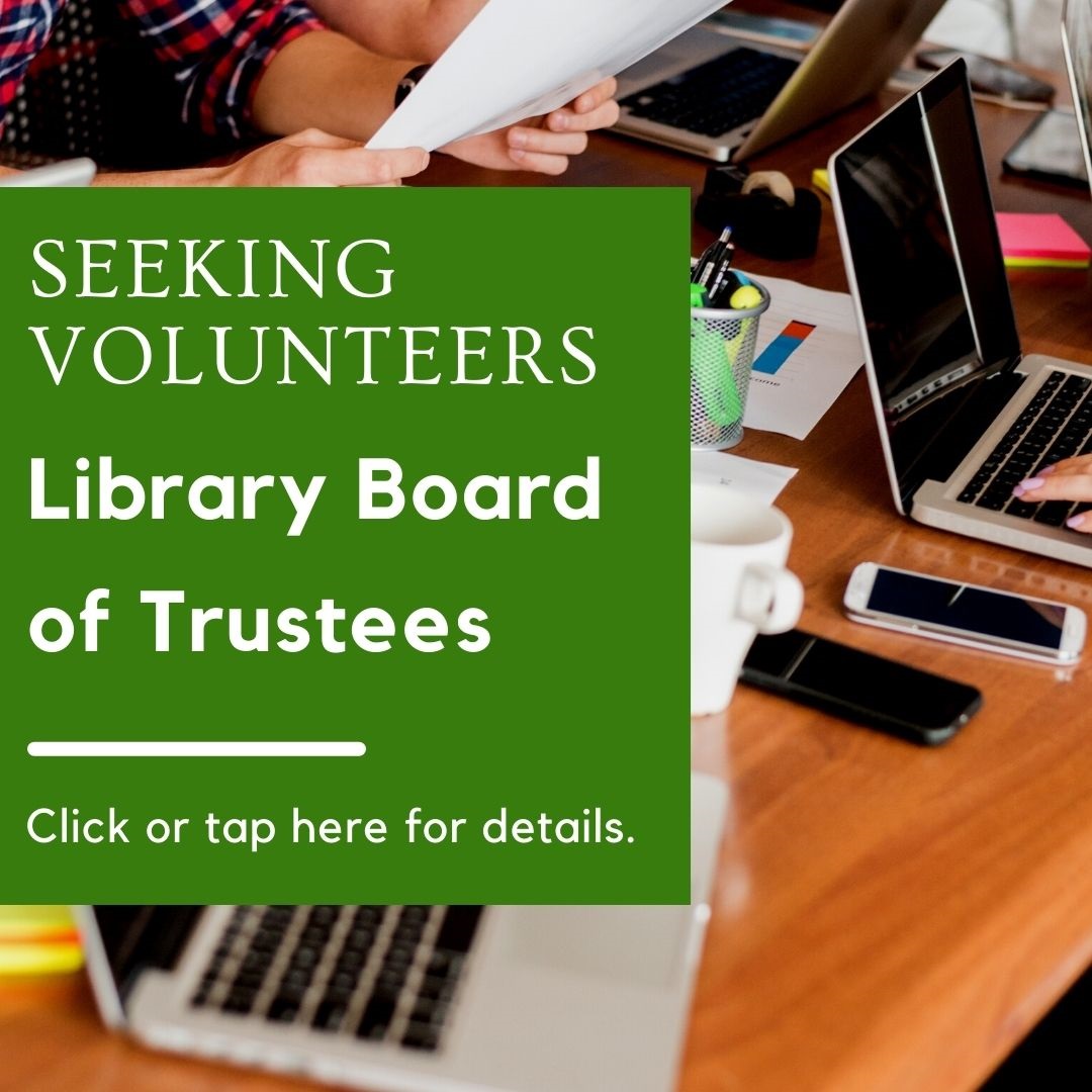 The Pembroke Public Library Board of Trustees is seeking a citizen volunteer to fill a current vacancy on the board. Board members are a vital link between the library and the community, and are entrusted with the governing of the library. Expert knowledge in a professional or technical discipline is especially valuable to assist with issues and decisions that have grown more complex and varied.If you are interested, please complete and submit the form linked here to trustees@pembrokepubliclibrary.org.