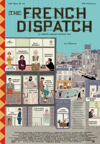 Monday Movie Matinee: The French Dispatch Monday, February 28th from 1:30-3:15 p.m. A love letter to journalists set in an outpost of an American newspaper in a fictional twentieth century French city that brings to life a collection of stories published in "The French Dispatch Magazine." Starring Benicio Del Toro, Adrien Brody, Tilda Swinton, Léa Seydoux, Frances McDormand, and Timothée Chalamet. 103 minutes. Rated R.