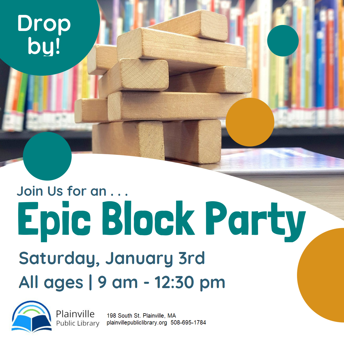 Join our EPIC Block Party in the Children's Department! We'll bring out our huge assortment of building blocks and fort materials so that kids of all ages can imagine, construct, and destroy!