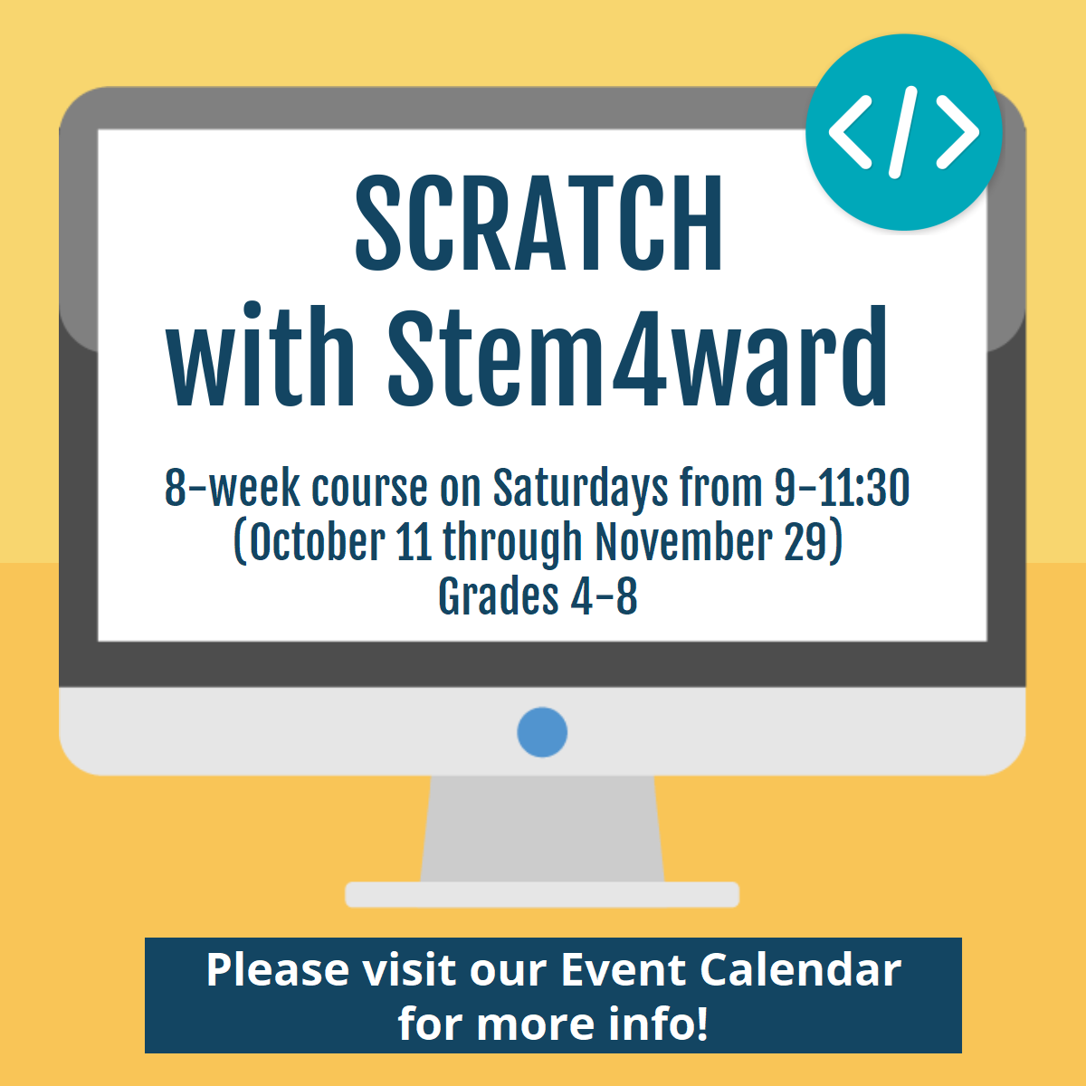 Stem4ward, a club made up of highschoolers from Franklin High, is teaching another coding series at the Plainville Public Library! Scratch is a programming language that lets you create your own interactive stories, games, and animations on the computer. Kids in grades 4-8 are welcome to register! Each class builds off of the previous class, so attendance at all classes is encouraged. Please register for all classes you are able to attend. We will be meeting every Saturday for eight weeks in the Children's Department. Attendees must supply their own laptop. Register online between 9/15/2025 9:00 AM and 10/11/2025 9:00 AM.