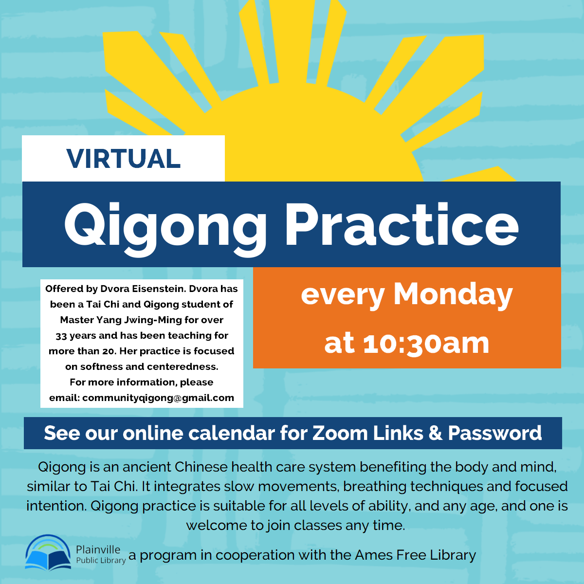 Qigong is an ancient Chinese health care system benefiting the body and mind, similar to Tai Chi. It integrates slow movements, breathing techniques and focused intention. Qigong practice is suitable for all levels of ability, and any age, and one is welcome to join classes any time. Offered by Dvora Eisenstein. Dvora has been a Tai Chi and Qigong student of Master Yang Jwing-Ming for over 33 years and has been teaching for more than 20. Her practice is focused on softness and centeredness.
