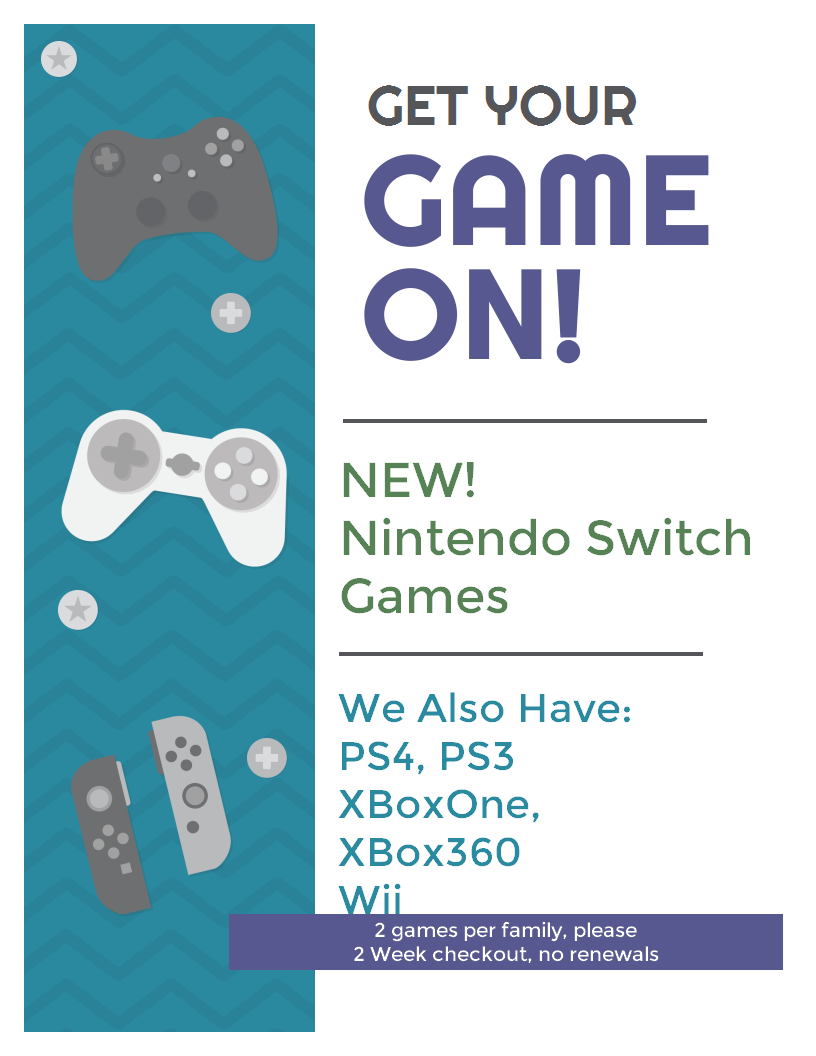 And we've added more Playstation4 and XboxOne games. 2 games per family, please. Stop by and see what we have in stock!
