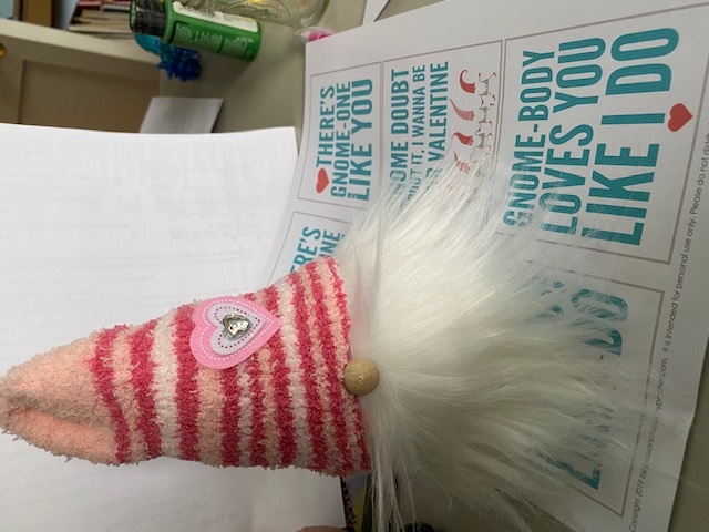 For Adults & teens. Create a valentine gnome and card. No artistic talent needed. Register on our calendar of events by Feburary 5. Materials cost $4.00