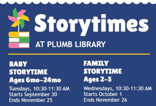 | Thursday, October 30 6:30 - 8:00 PM at Plumb Library |