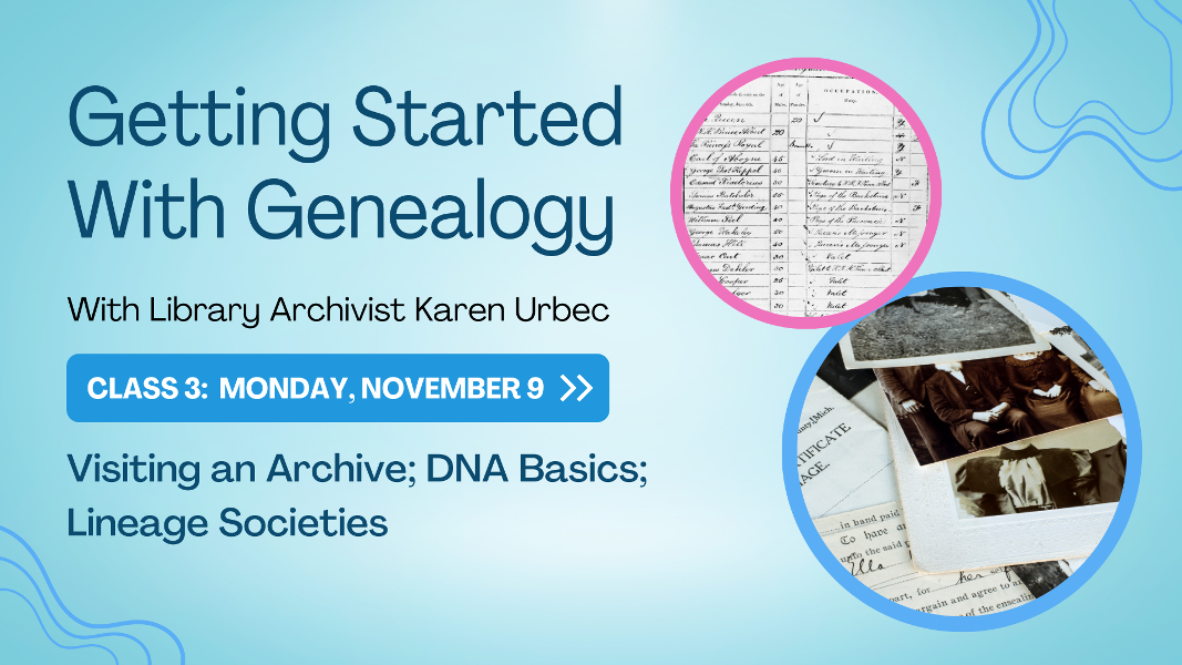 Monday November 4 at 6:30PM | Join us this fall and learn the basics of genealogical research!