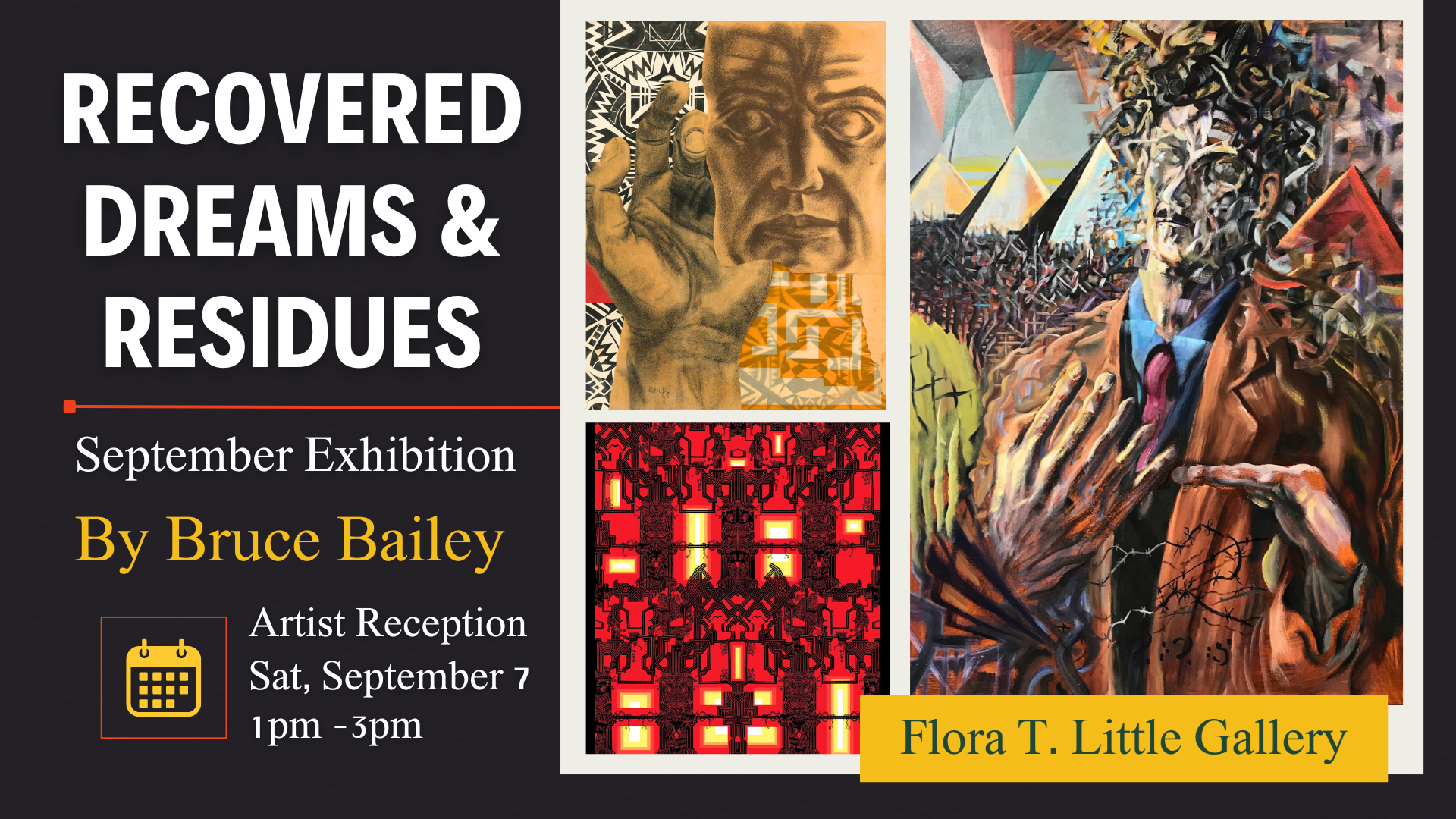 Bruce Bailey's exhibition Recovered Dreams and Residues will be on display in the Flora T. Little Gallery through the month of September!