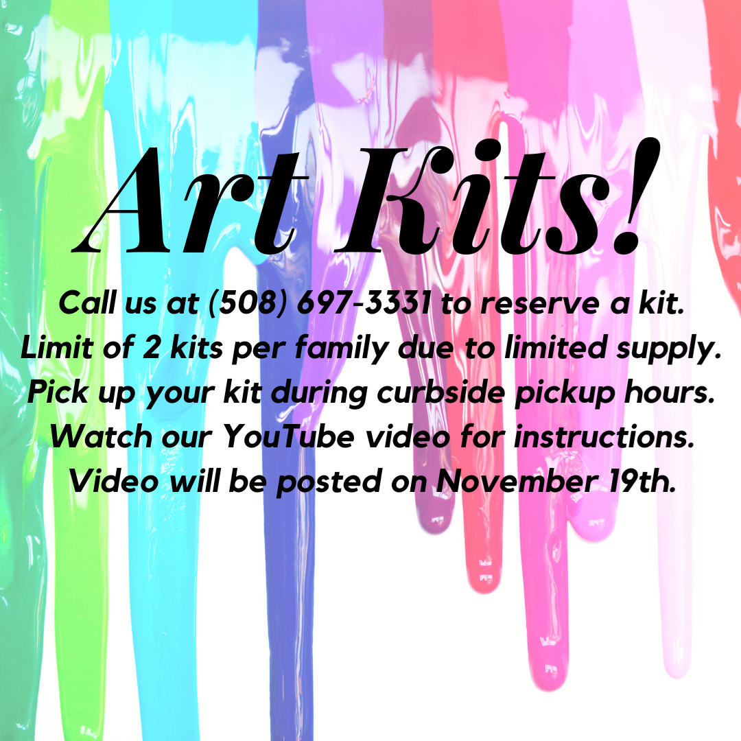 Offering Art Kits! Reserve your Art Kit by calling us at (508) 697-3331. Limited supply. Pick up your kit during our curbside pickup hours. Follow November 19th YouTube posting for a demonstration.