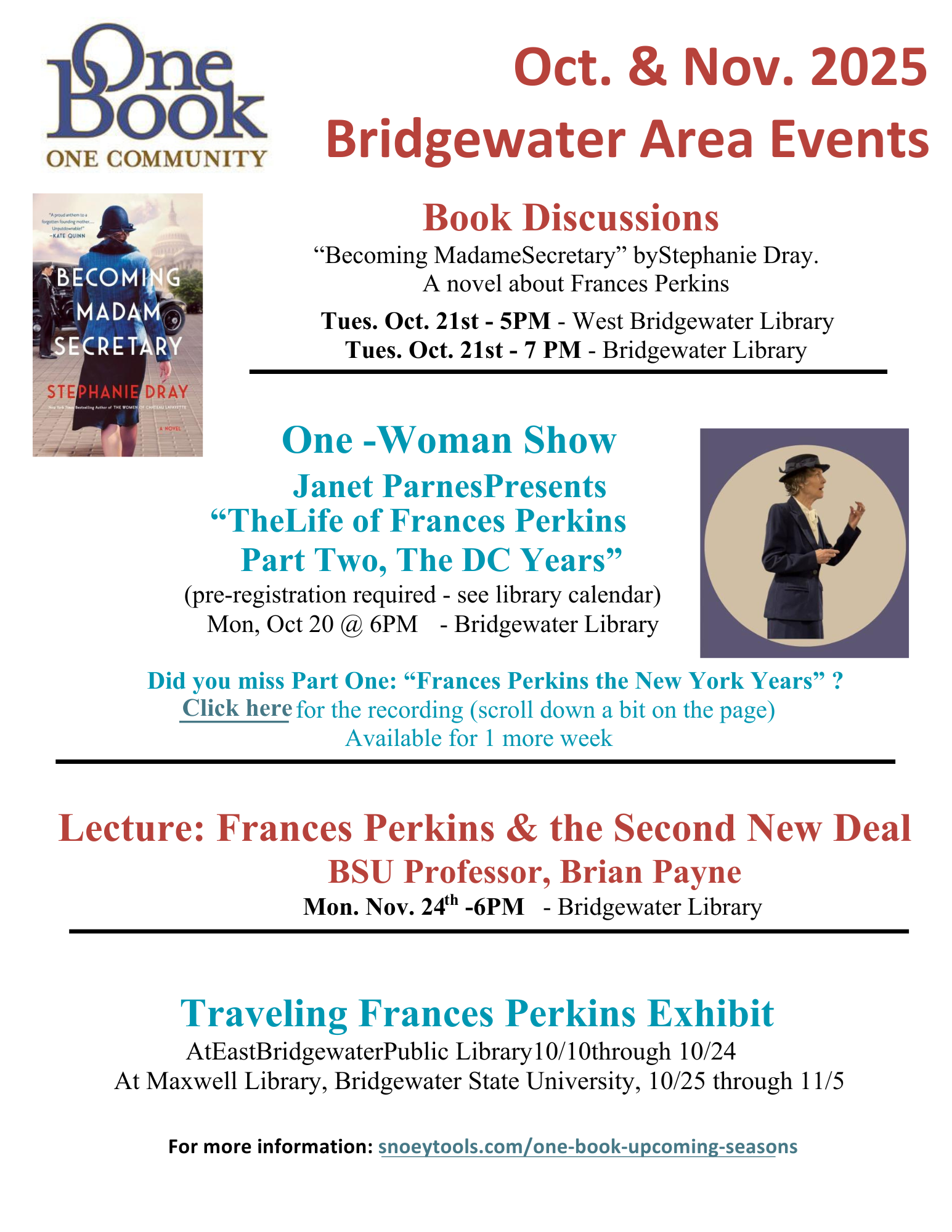 Join us as Part 2 of her story unfolds (no need to have seen Part 1). Hear how she navigated the Depression, New Deal, and World War II as FDR’s Secretary of Labor. Learn about her bold demands before accepting the job, her hidden role in New Deal programs, her near impeachment, and her struggles with family, gender bias, and wartime challenges. Discover the character and contributions of this remarkable, often overlooked American heroine.
