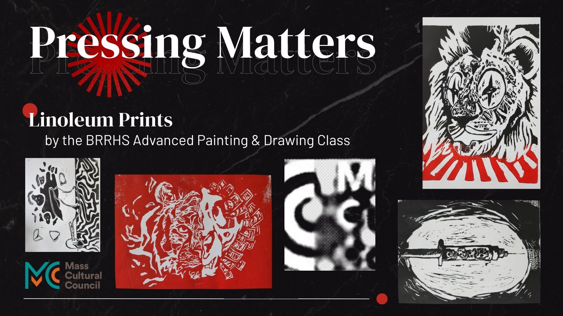Join the Bridgewater-Raynham Regional High School Advanced Painting & Drawing Class for the closing reception of their show, Pressing Matters. This show features a series of linoleum prints based on social justice issues students felt strongly about. Made while working with artist and printmaker Nancy McCormack Demren and BRRHS art teacher Shirley Wood.