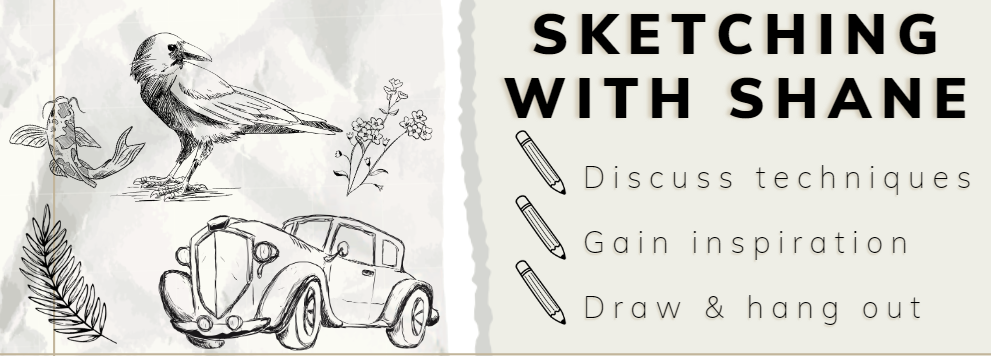 Join Shane from 4 - 5 PM on Mondays in December as he sketches using an iPad and other mediums. Discuss techniques and gain inspiration as you draw along beside him. Teens and Tweens are welcome to meet in this informal session to watch, learn, draw, and hang out.
