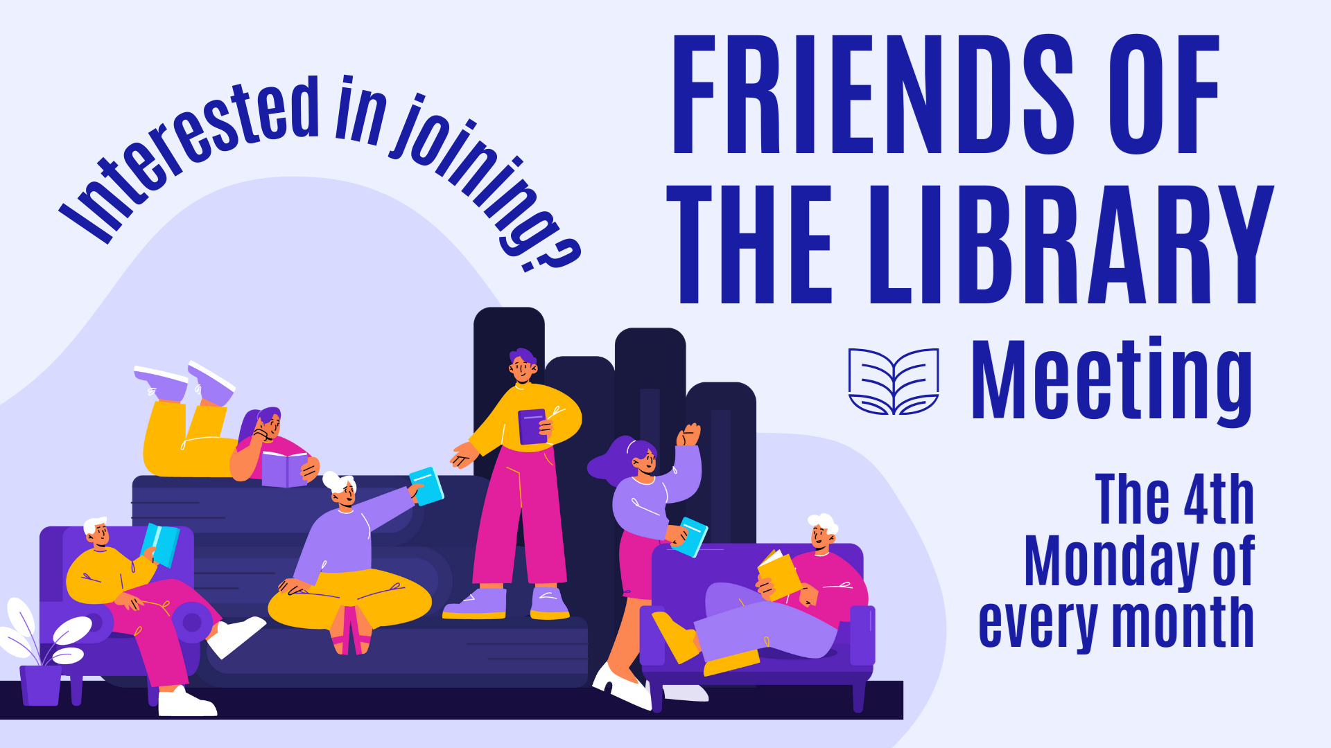 The group meets monthly on the 4th Monday of the month. No registration required. Drop-in and maybe we'll be Friends!