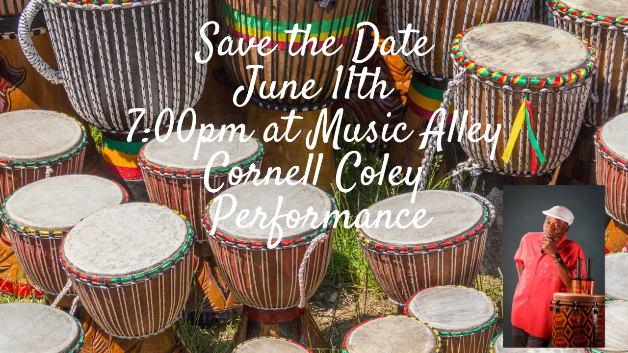June 11th, Cornell Coley Performance at 7:00 PM at the Music Alley