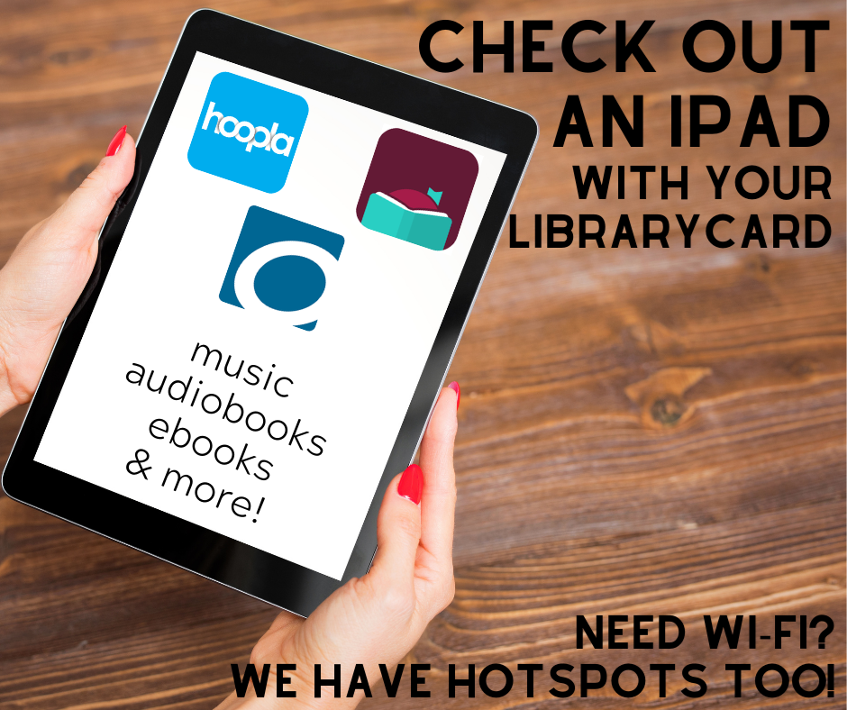 We now have iPads that can be borrowed with your library card.