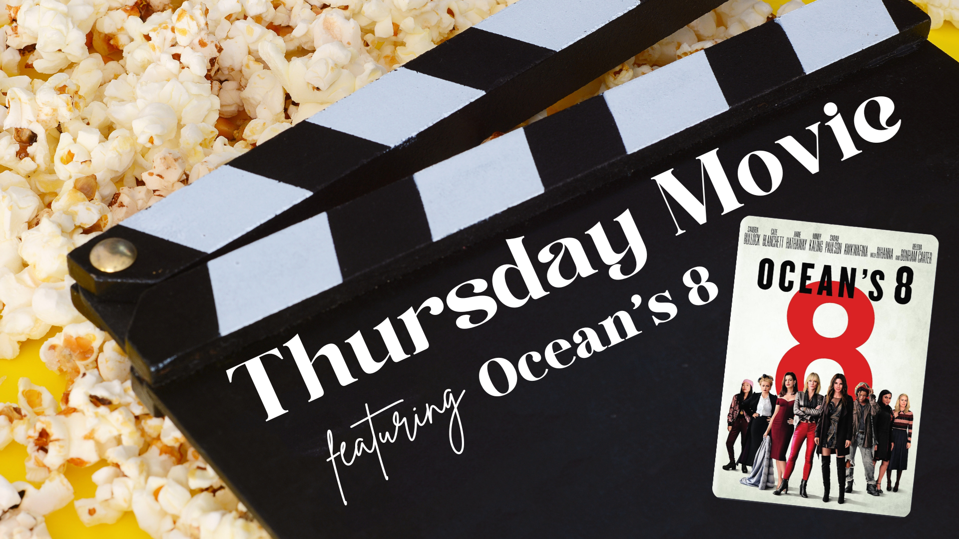 | Join us for a showing of Ocean's Eight (2018), rated PG-13, 1 hour, 50 minutes. Enjoy complimentary popcorn and snacks.