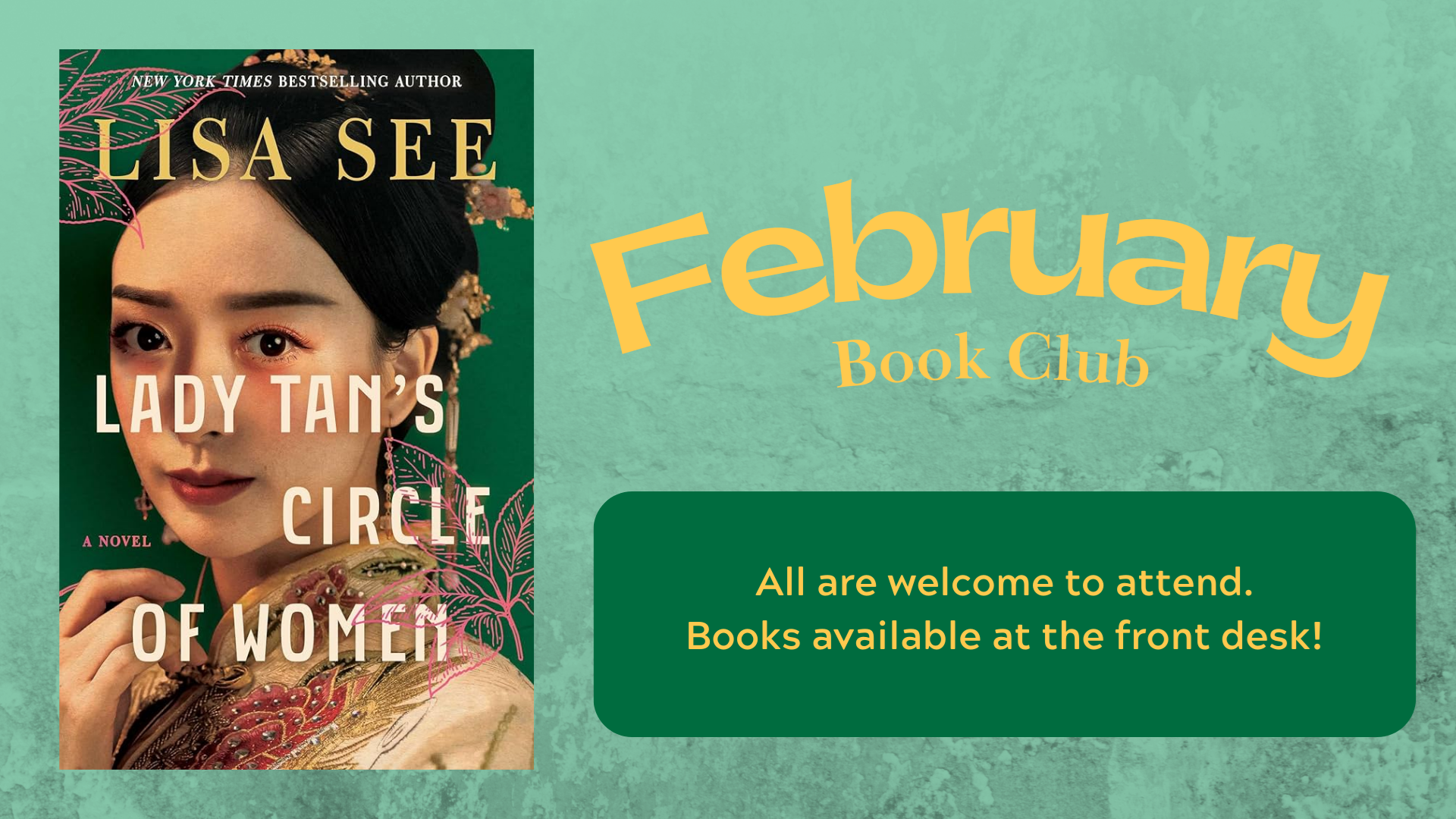 Join the Book Club for a discussion of Lady Tans Circle of Women by Lisa See. Books are available for checkout at the front desk.