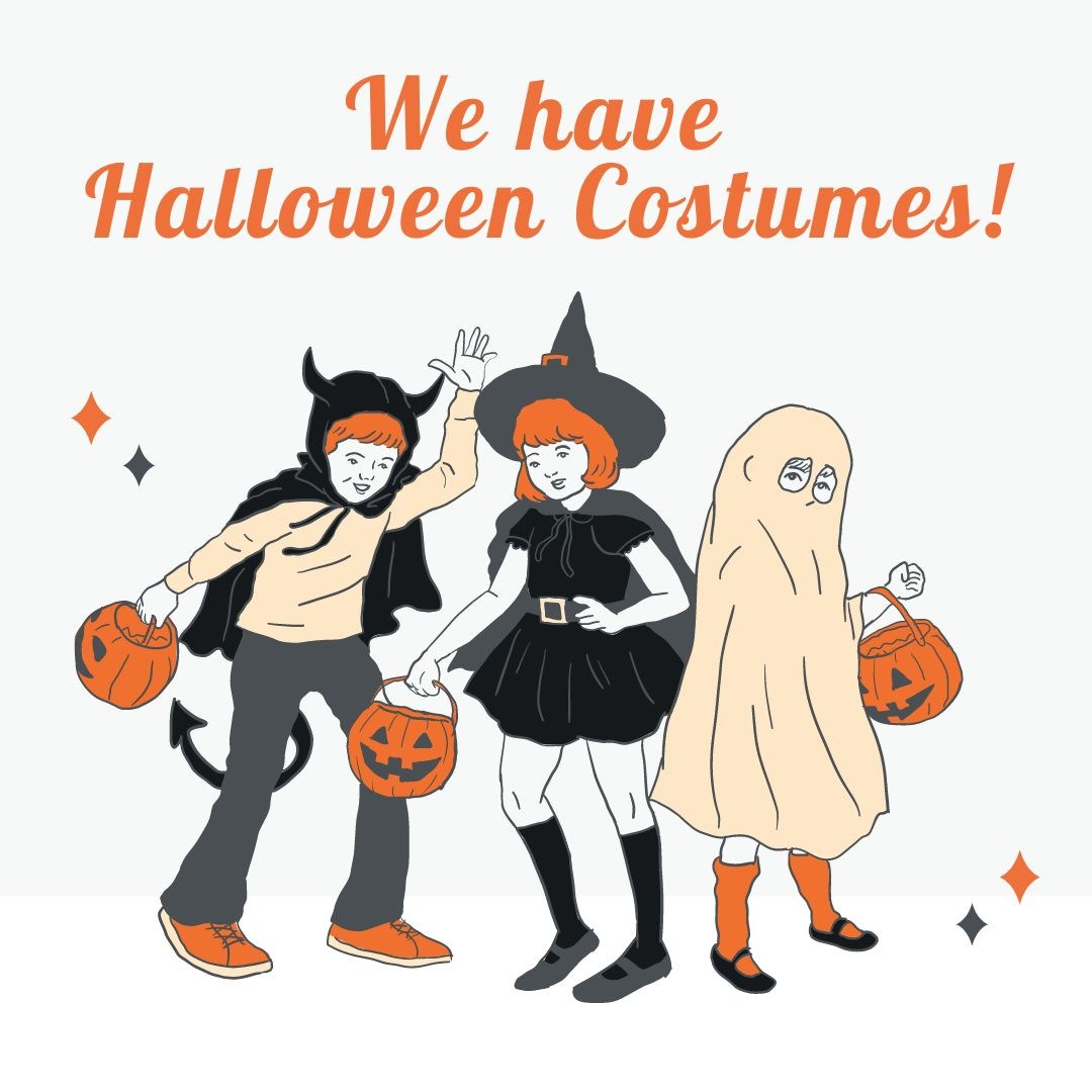 Grab a costume until Halloween | | Looking for a costume? Come grab one today, free of charge, compliments of all the generous folks who already donated. All sizes available! |
