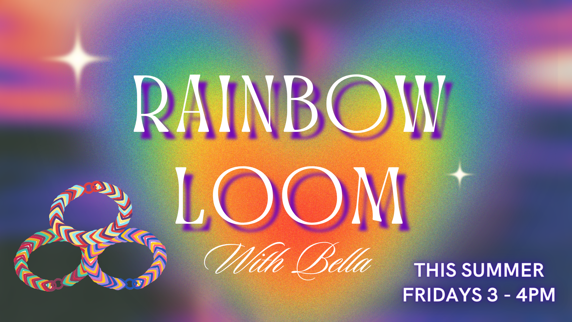Bring your rainbow loom and come hang out with Bella in the Vibe! Meet friends and create new designs for bracelets and more. This group is led by a local high school student and is for ages 7 - 14.