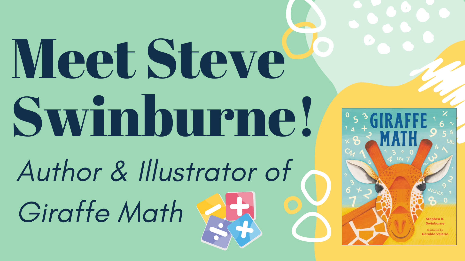 Join Steve Swinburne, author of Giraffe Math and many others, for this fun program! Learn about Steve's books, his life and draw with him!