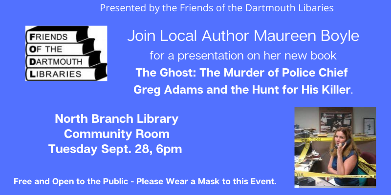 Boyle will discuss her latest book, The Ghost: The Murder of Police Chief Greg Adams and the Hunt for His Killer. The author explores the 1980 murder of Police Chief Greg Adams and the shocking discovery of his killer’s remains in a quiet Dartmouth neighborhood.