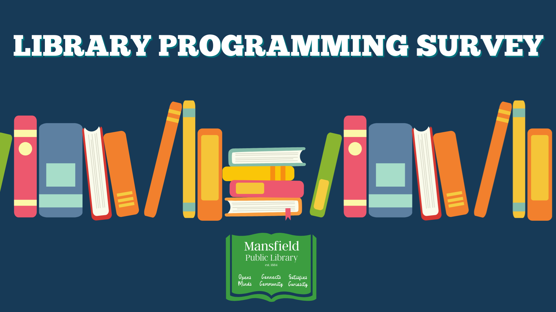 As such, we want to ensure that the library programming we provide matches the needs of our varied and wonderful community. Please take a few moments to fill out a survey about library programming. The information you provide to us in this survey is essential in helping us create the best services and programs possible. All submissions are confidential and will be used solely by library staff at the Mansfield Public Library.