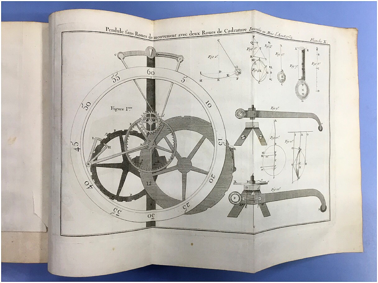 Tick-tock! Here's a recent discovery from our collection: this is one of the beautifully engraved foldouts fromTraité d’Horlogerie by Jean André Lepaute (Paris: Chez Samson, 1767). Lepaute was clockmaker to the King. Mathematical contributions were made by Lepaute's wife, the brilliant astronomer and mathematician Nicole-Reine Hortense Etable de Brière (1723-1778), "who made her debut in calculating the tables on the oscillation of the pendulum."