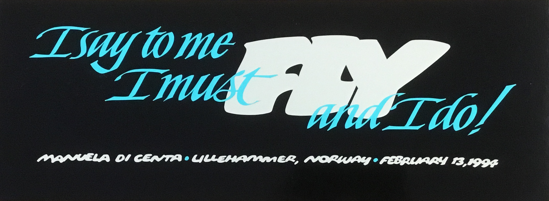 Pictured here is Hobie’s celebratory quotation taken from cross-country skier Manuela Di Centa, who won five medals at the 1994 Winter Olympics, Lillehammer, Norway.
