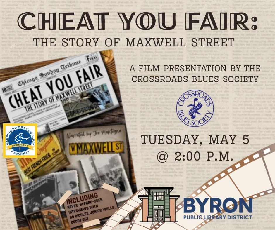 Join Crossroads Blues Society as they present the movie Cheat You Fair: The Story of Maxwell Street. This documentary details the history of Chicago's Maxwell Street community, including the rise and fall of the Maxwell Street Market. Register here. |