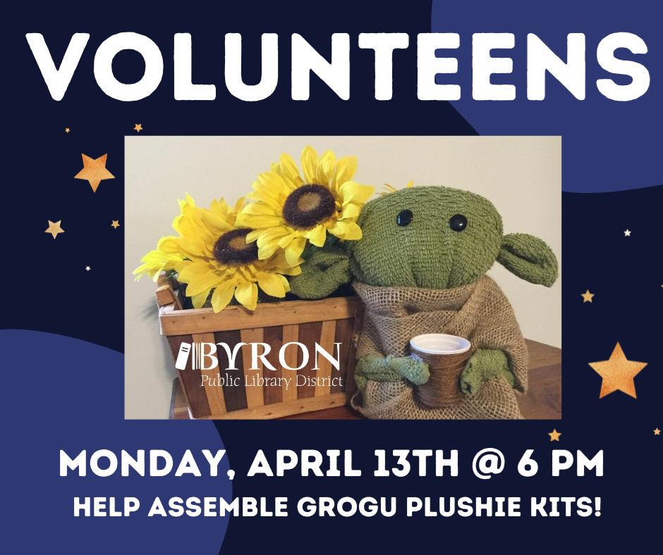 Earn volunteer credit on April 13th by helping assemble Grogu (Baby Yoda) kits that will be for a program on Star Wars Day in May (5/4). If you attend, you are guaranteed a kit!