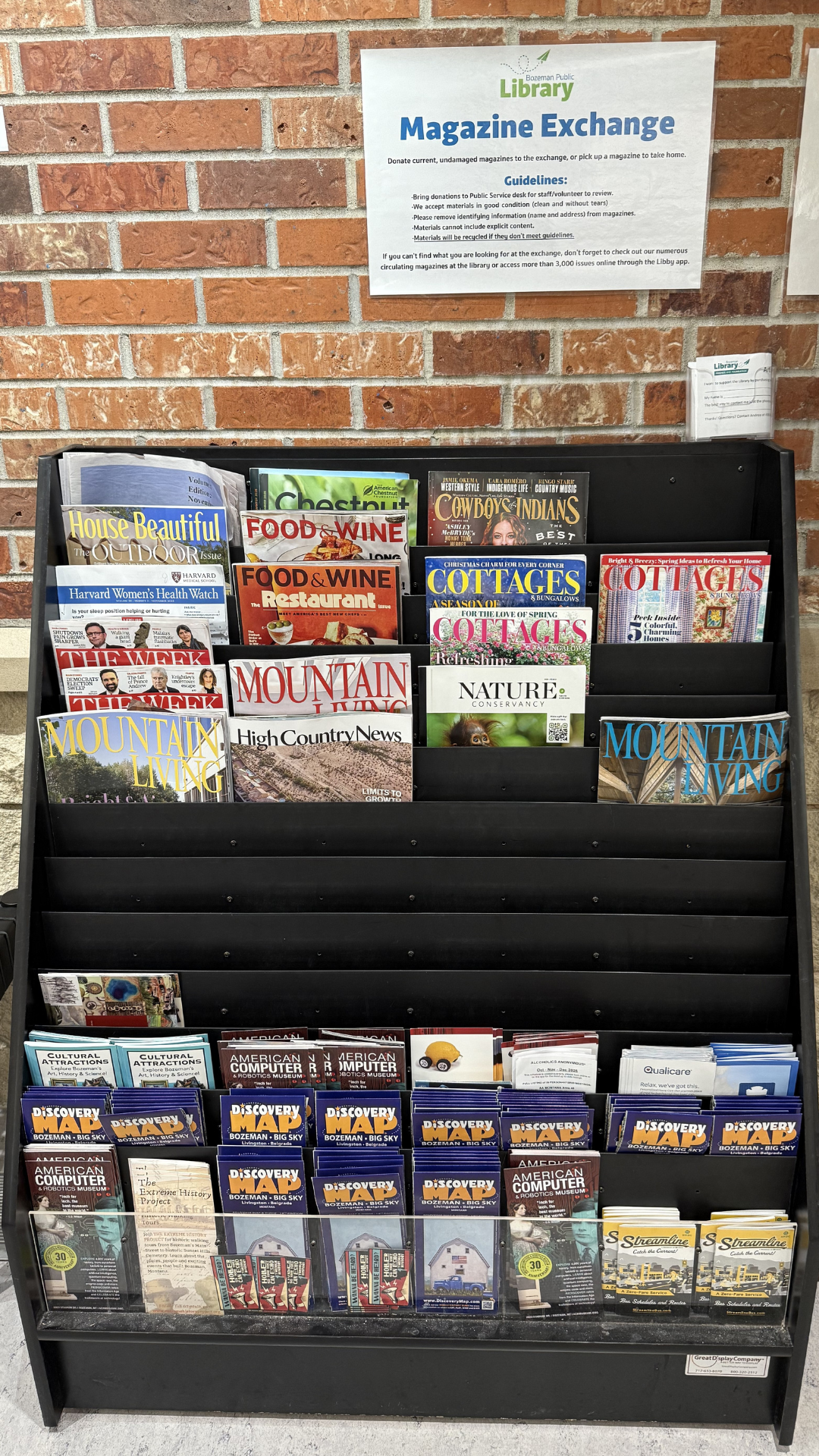 If you can't find what you are looking for at the exchange, don't forget to check out the magazine collection on the second floor or access thousands of magazines online through the Libby app.