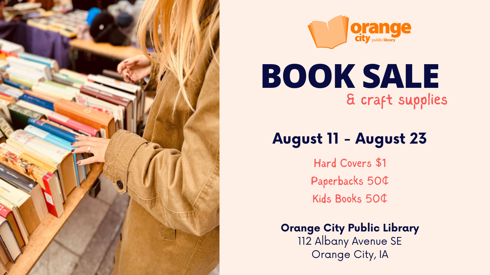 Be the first in line for our August Back to School Book sale! The sale runs August 11 - August 23. Hard cover books will be $1.00, paperbacks 50¢, and all kids books 50¢. There will also be craft and art supplies for sale for friends and families to buy and use. (Items are not intended for resale.)