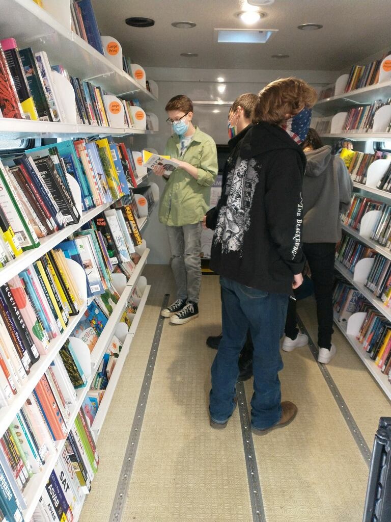 Tri-County Career Center students tour the Bookmobile during a class visit.