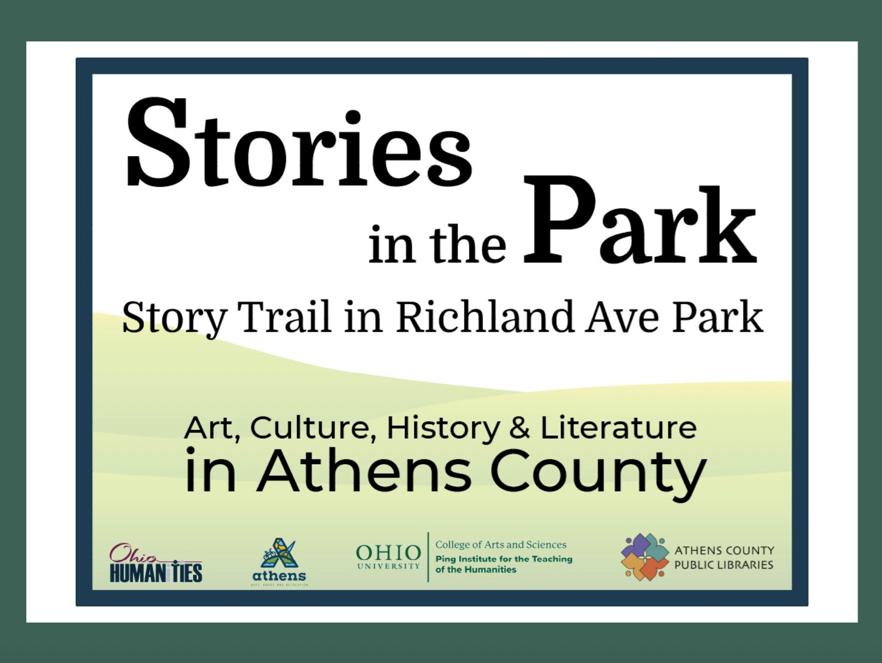 Bring your students to this new story trail in Richland Park (Athens). For the next year, themed, interactive exhibits will celebratethe diverse groups of men, women, and institutions that built and advanced humanistic education in Southeast Ohio. In the future, this story trail will also highlight the work of area artists, writers, and historians.