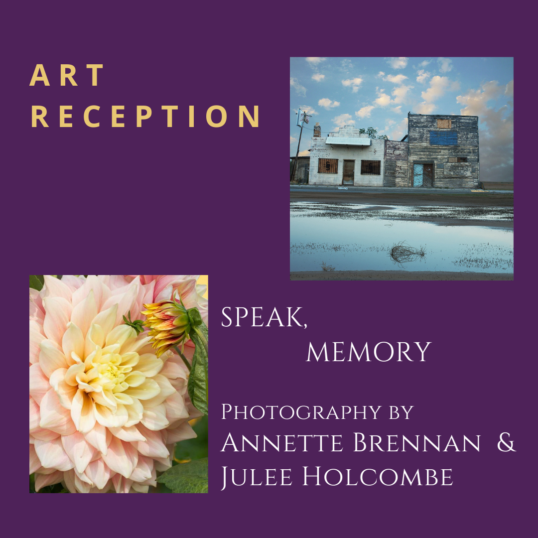 Art Show Reception: Speak, Memory Wednesday, December 8 @ 5:00 PM The York Public Library Art Committee invites you to a reception in recognition of the current photo exhibit "Speak, Memory," and its two photographers, Annette Brennan and Julee Holcombe. The artists will briefly discuss their work and answer questions.