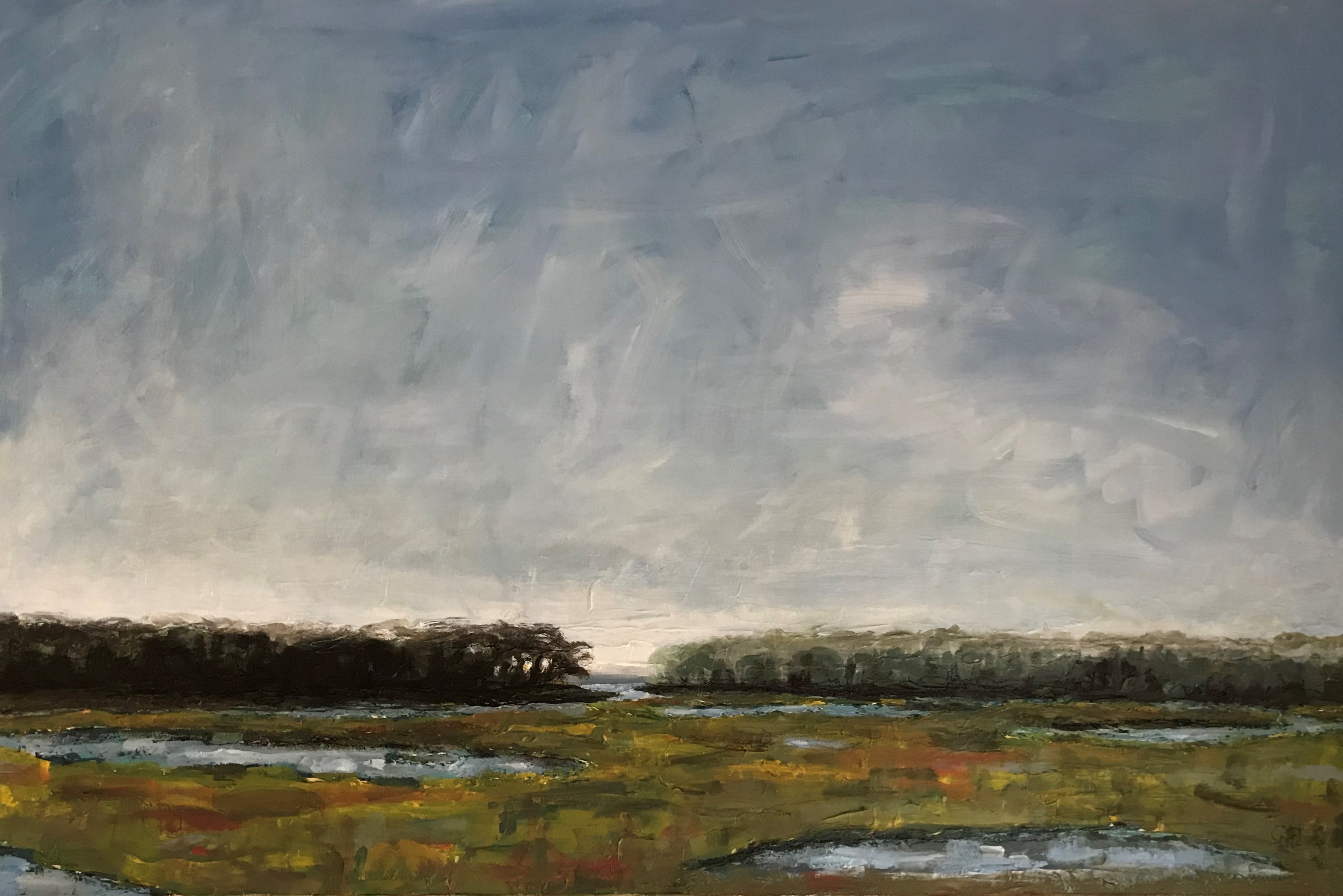 Saltwater Sky Local artist Maryse Newton uses large brush strokes and palette knife in her latest collection inspired by the surrounding saltwater and vast open sky. Greys, blues, whites, and greens all emerge in these crisp, clean airy works on canvas. ‘Saltwater Sky’ will be on display until February 18, 2020.