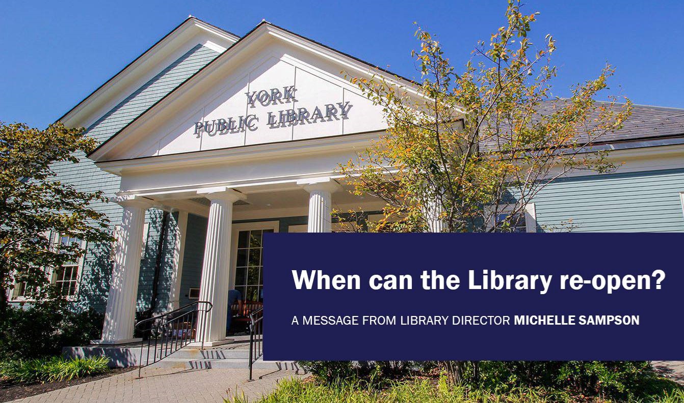 In recent days, the Library has sought guidance from the Maine State Library, Maine CDC and DECD, and York’s Town Manager and Local Health and Code Enforcement Officer. In line with their recommendations and advice, and in accordance with the Governor’s Executive Order and staged re-opening plan, York Public Library will remain closed to the public through May 31. Barring any changes in Executive Orders from the Governor, pending the results of national tests currently under way, and as advised by the Maine State Library, we will re-open the library in stages beginning with curbside service.
