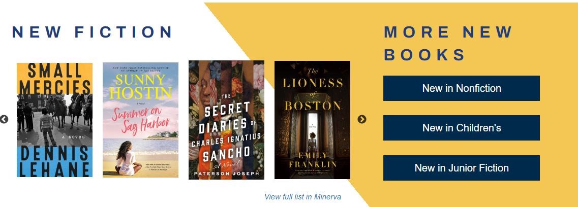 1. You asked about a place to see our newest books, even if they were checked out! We now have a place on our website where you can see what we've recently added to the collection and order it if you can't find it on the shelf! Scroll down on our homepage to find the rotating display of brand new adult fiction and links to our most requested categories! |