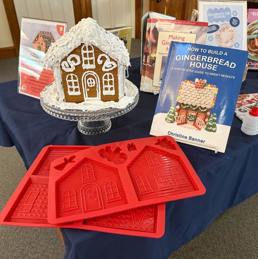 Did you know that with your library card, you can check out a Gingerbread House Kit? The kit contains 2 silicone molds, 1 spatula, an icing bottle with tip assembly, and a recipe personally selected by our resident baker and certified amaaaazing cook, Adult Services Librarian Michele Bertolini. Make memories this holiday season with this convenient and festive bundle!