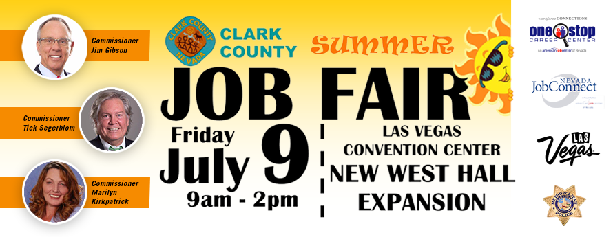 Now Hiring! Join Clark County Commissioners Jim Gibson, Tick Segerblom, and Marilyn Kirkpatrick for the first large-scale job fair in Nevada since the pandemic. The event takes place on July 9, 2021 from 9 a.m - 2 p.m. at the Las Vegas Convention Center. So polish up your resume and bring plenty of copies as this event is expected to host over 100 employers, some hiring on site! Be sure to dress your best and treat this as a real job interview with multiple companies.