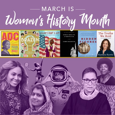 Kamala. Ruth. Eleanor. Malala. Rosa. Gaga. Alice. Beyoncé. Maya. Georgia. Dolly. Sally. Serena. The first names of these fascinating women are shorthand for the contributions that they, and countless others, have made to politics, law, human rights, music, poetry, art, literature, sports, science, and so much more. Celebrate this important month with us as we guide you through our library catalog of books, movies, and music by inspiring, courageous, talented, historic ladies.