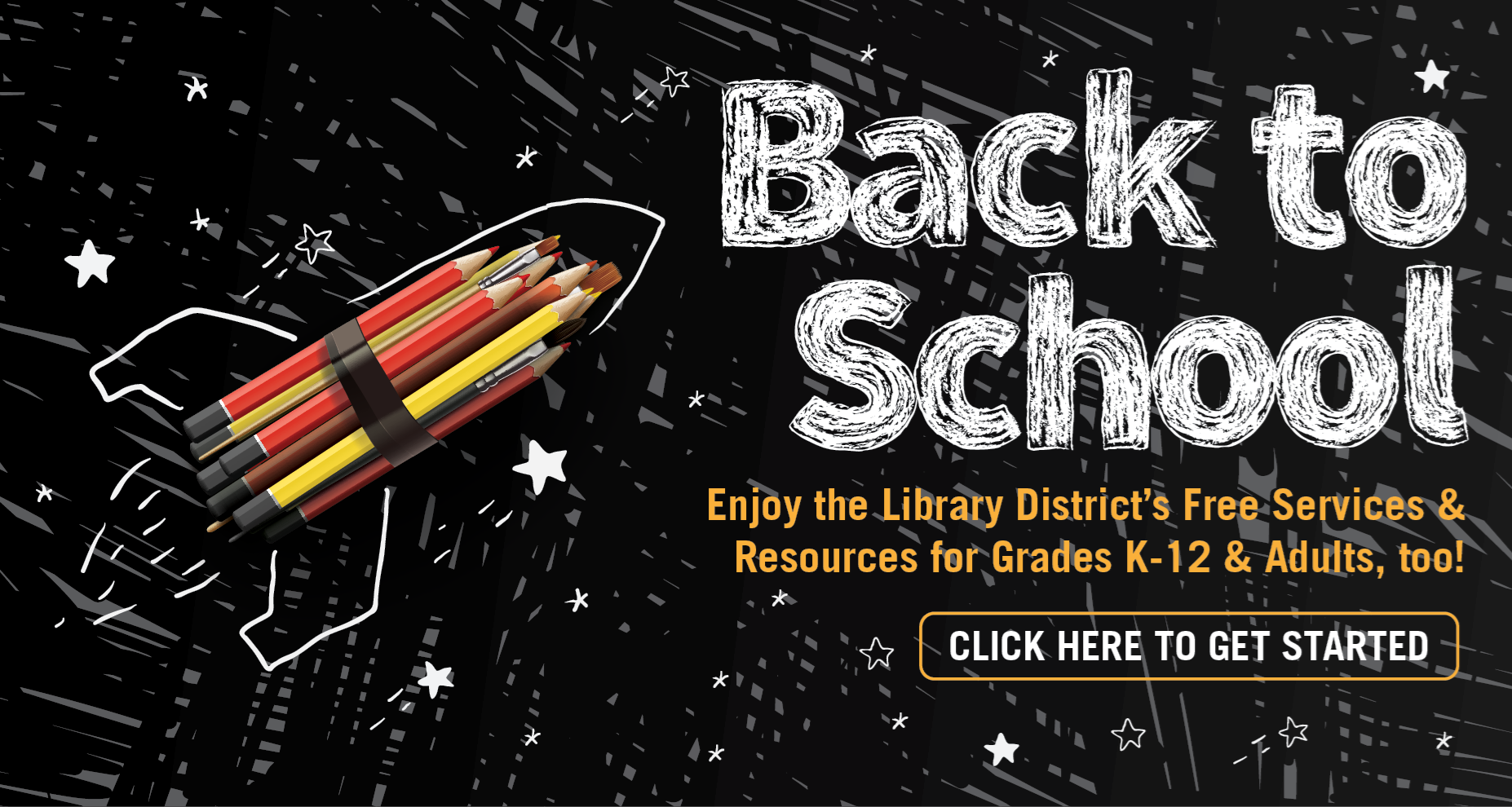 The Library District is Your Back To School Headquarters For All Ages – Kids, Teens & Adults! The pandemic has brought with it a new normal. Whether you are an adult looking to change your career or a parent in need of learning support for your kids and teens this school year, the Library District is here for you! Kids & Teens – We are here to help with a broad range of support systems, both online and within our neighborhood libraries, for children in grades K-12. Check HERE for examples of educational support, free access to technology, reading and research materials, homework help, tutoring, and online resources. Adults – You may be looking for ways to improve your job & language skills, earn a diploma, or change careers. We have so much to offer through our vast online resources HERE, our Adult Learning Program HERE, and our One-Stop Career Center HERE. Look for your nearest library branch HERE, or check out LVCCLD.org for everything that we offer for every age and interest!