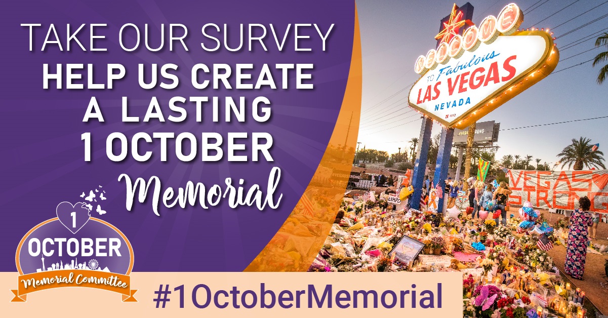 Take This Brief Survey from Clark County to Help Create a Lasting 1 October Memorial We will never forget what happened in Las Vegas on October 1st, 2017. Now, Clark County is working to create a lasting memorial that remembers the victims, honors the survivors and first responders, and celebrates the resilience of our community. Your input is critical to the success of this effort. Please take a brief survey HERE and provide your input on the memorial’s artistic, design and educational features. Also, please consider sharing this survey with your friends and anyone who has an interest in this matter (before August 15th, the last day this survey is available). To follow the progress of this project, please visit the link HERE and subscribe to email updates from the 1 October Memorial Committee. Additionally, you can follow the committee on Facebook.